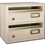 En éste apartado disponen de una extensa gama de modelos de MADERA MELAMINADA (con cantos cubiertos con PVC, y con puertas tanto en madera de la misma terminación que el cuerpo, aluminio de 2 mm. de grosor, ,metacrilato de 5 mm. de grosor, aluminio extrusionado anodizado ó lacado) y en modelos de MADERA CUBIERTA CON HOJA NATURAL, barnizada con material de alto brillo y resistencia.